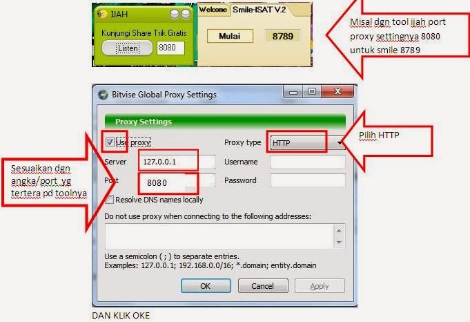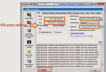 1. 5. Klik proxy seting (dibawah port di bitvise) lalu isikan seperti gambar